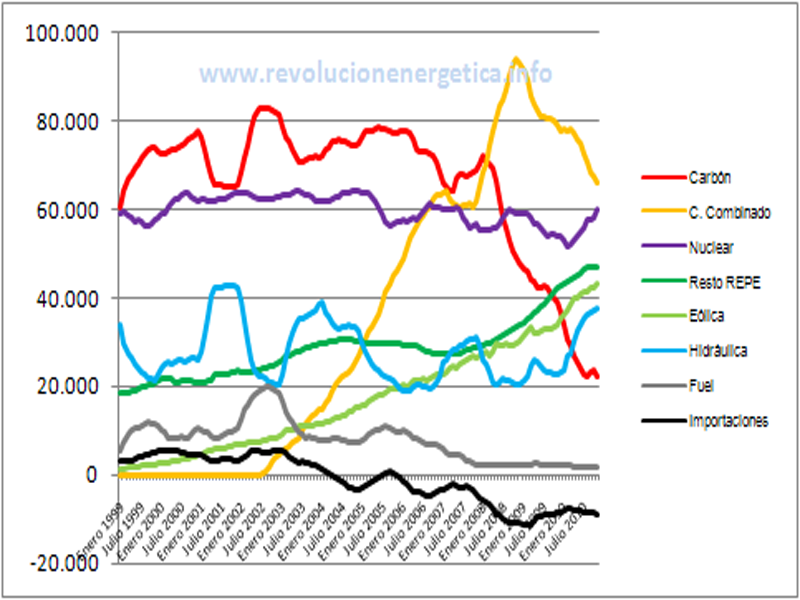 Por ejemplo, ciertos propagandistas achacan a las renovables la culpabilidad de este déficit. Pues bien según la CNE las primas a las renovables han sido este año hasta el 31 de Octubre de 4.549 millones de € y las primas a la cogeneración (normalmente de gas, y que suelen incluir los periodistas dentro de primas a renovables) han sido de 907 millones de €. Pueden parecer ambas cifras astronómicas pero podemos ver en la web de Red Eléctrica que el consumo, hasta 31 octubre de 2010 es de 212.089.480.000kWh, lo que significa que las primas a energías renovables tienen un impacto total en la tarifa de 2,14c€/kWh. Si que es cierto que estas primas han subido en los últimos años. De 2006 a 2010 las primas a renovables han pasado de tener un impacto de 1c€/kWh a 2,14c€/kWh, pero ni por asomo un crecimiento así justifica ni el déficit de tarifa actual, ni el aumento de 4c€/kWh que lleva la electricidad para el consumidor doméstico. Tampoco los incrementos mucho más brutales que ha tenido la electricidad para el consumidor industrial, en ocasiones superiores al 100% en unos meros 3 años